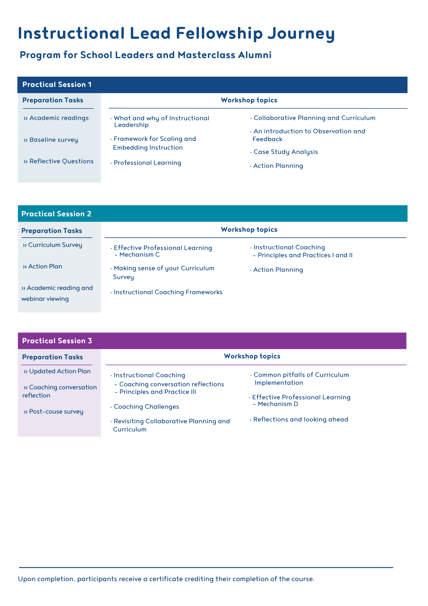 The Instructional Lead Fellowship is a 3-day program for Masterclass alumni and school leaders (Principal and/or Deputy/Associate Principal), who as a team, seek to build their capacity to embed and sustain high-impact instruction, and establish/refine instructional coaching in their school.
